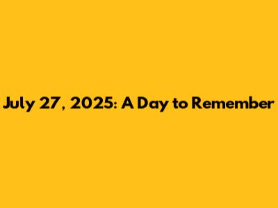 On a more personal level, July 27, 2025, could hold special significance for many individuals. It might be a birthday, an anniversary, or another important milestone. People could be celebrating personal achievements, pursuing their passions, and spending time with loved ones. It's a day to reflect on the past, appreciate the present, and look forward to the future. Perhaps someone is starting a new job, graduating from college, or embarking on a life-changing adventure. Others might be dedicating the day to self-care, mindfulness, and personal growth. Life is a journey filled with ups and downs, and July 27, 2025, will be a unique chapter in each person's story. It's a reminder to cherish the moments, embrace the opportunities, and make the most of every day.