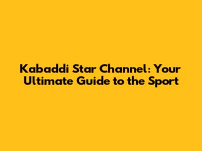 Kabaddi Star Channel: Your Ultimate Guide