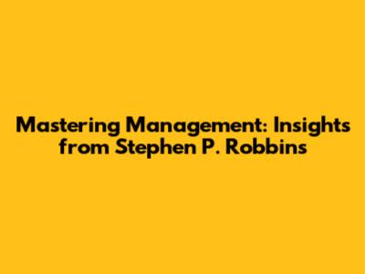 Mastering Management: Insights From Stephen P. Robbins
