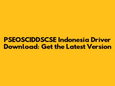 PSEOSCIDDSCSE Indonesia Driver Download: Get The Latest Version