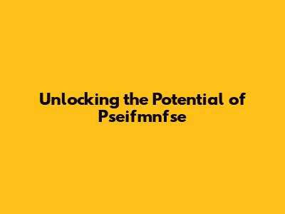 Unlocking The Potential Of Pseifmnfse