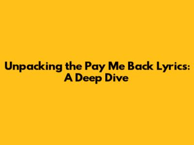 Unpacking The 'Pay Me Back' Lyrics: A Deep Dive